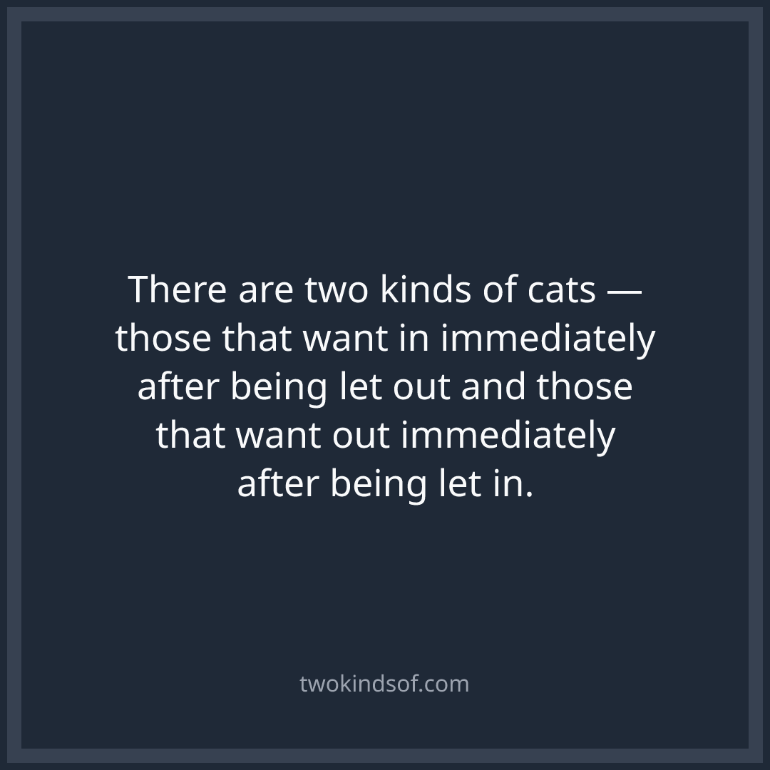 There are two kinds of cats — those that want in immediately after being let out and those that want out immediately after being let in.