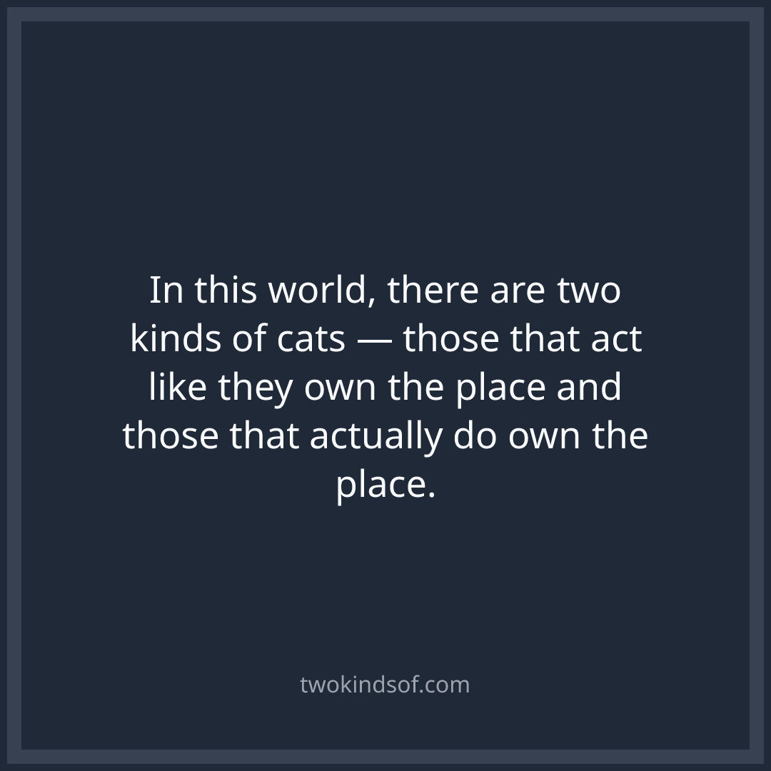 In this world, there are two kinds of cats — those that act like they own the place and those that actually do own the place.