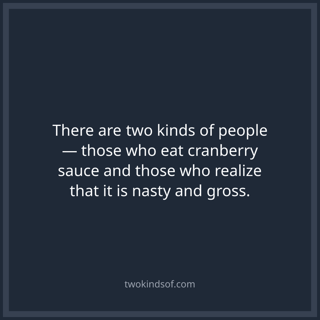There are two kinds of people — those who eat cranberry sauce and those who realize that it is nasty and gross.