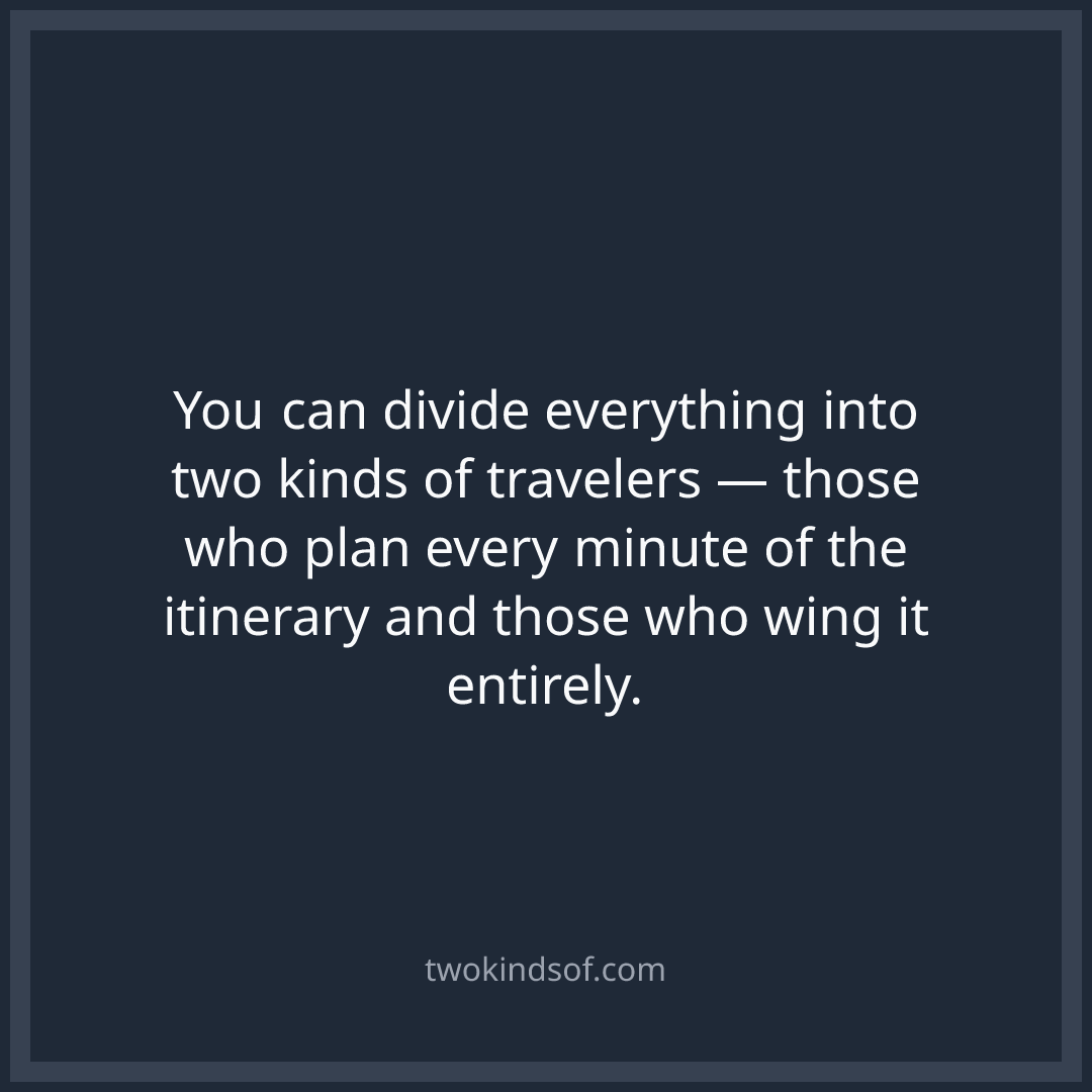 You can divide everything into two kinds of travelers — those who plan every minute of the itinerary and those who wing it entirely.